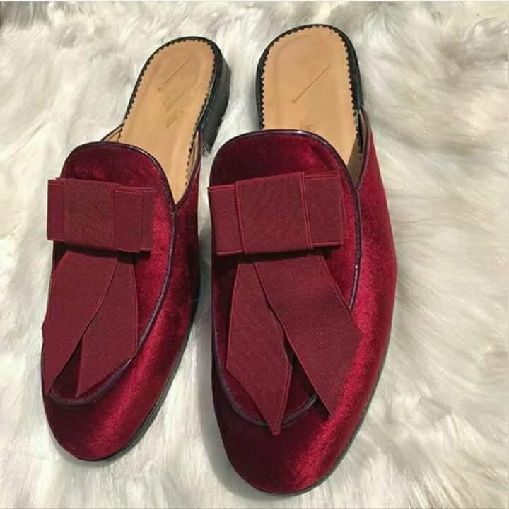 Red halfshoe suede loafers